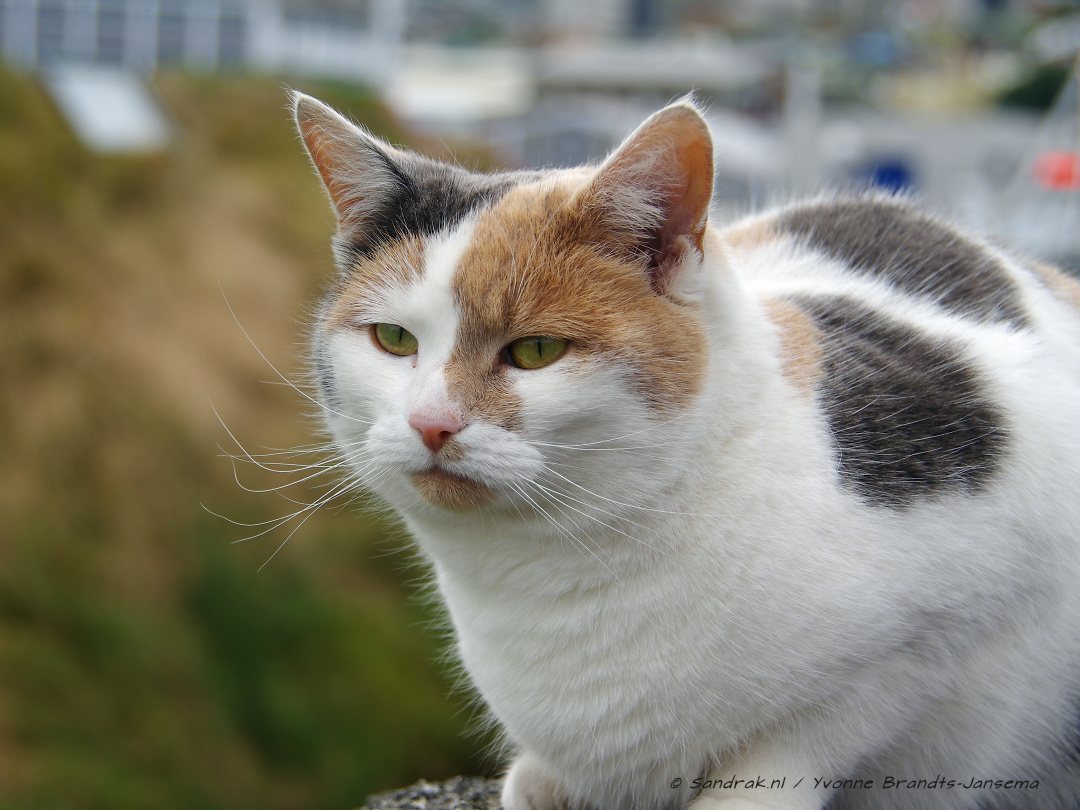 Schildpad poes, uitkijkend over de haven van Torshavn op de Faroer eilanden.