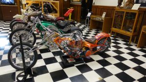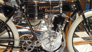 Uiteraard is ook Harley Davidson uitgebreid vertegenwoordigd en wordt de ontwikkeling van de machines uitgebreid uit de doeken gedaan, tot de noodzakelijke uitvinding van het stuurslot om diefstal te voorkomen toe. Leuk is bv. om te zien hoe bij de oude twee- en viercilinder machines de motor nog in lengte richting onder het frame hing, bij de modernere machines is dat in de breedte met als gevolg een veel betere overbrenging van de aandrijfkracht op het achterwiel.
