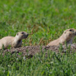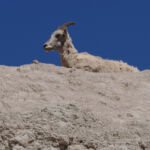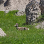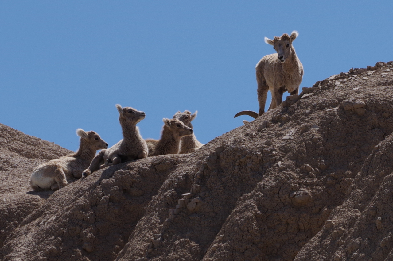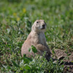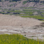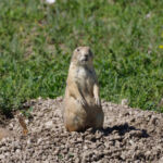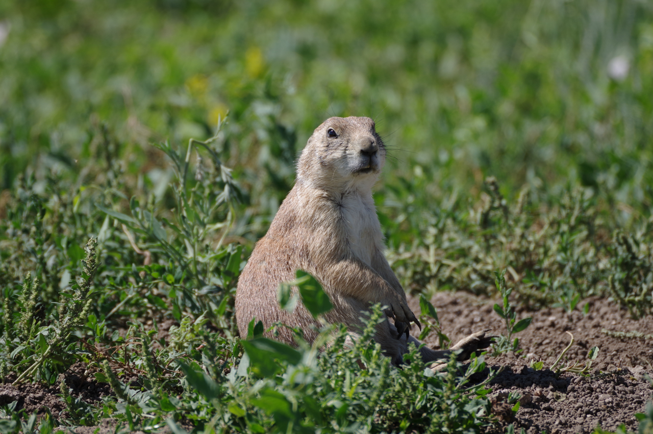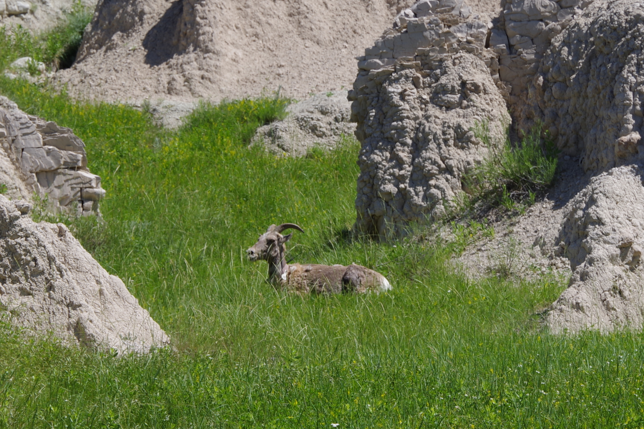 In de verte zagen we regelmatig dieren lopen; bisons, herten, schapen. Later zagen we dichter langs de weg hele kolonies prairie dogs die staand op hun achterpootjes de passerende bezoekers in de gaten hielden.