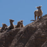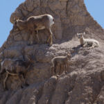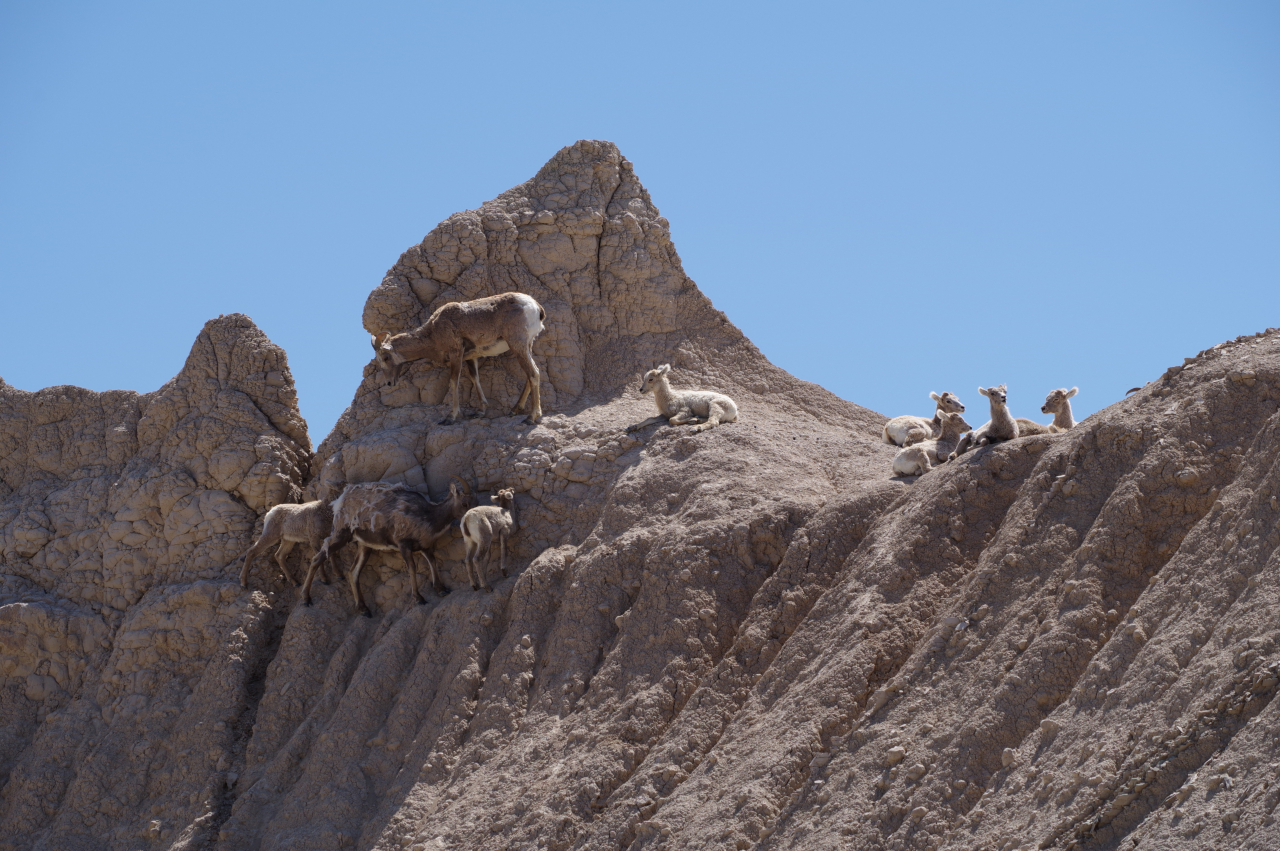 Verderop in het park werden de rotsen ruiger en leken we op een vreemde planeet rond te rijden. Af en toe zaten er kuddes bighorn sheep op de rotsen naar beneden te kijken, al doende files veroorzakend bij de toeristen.