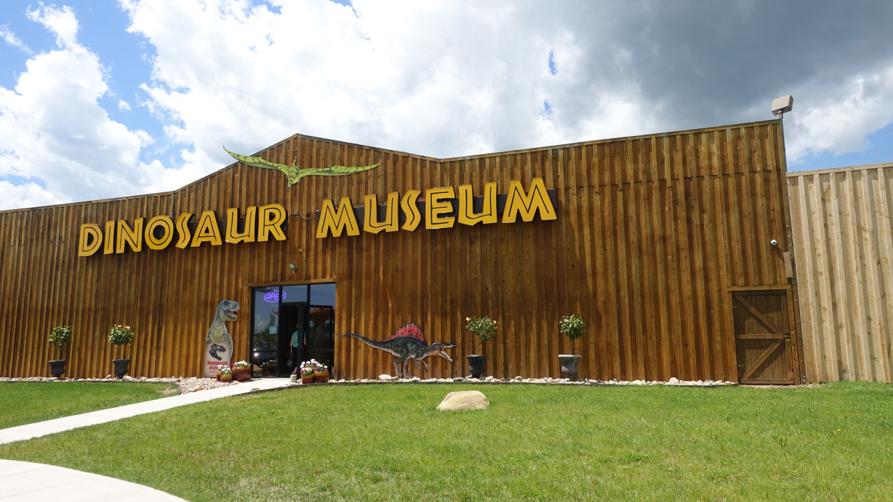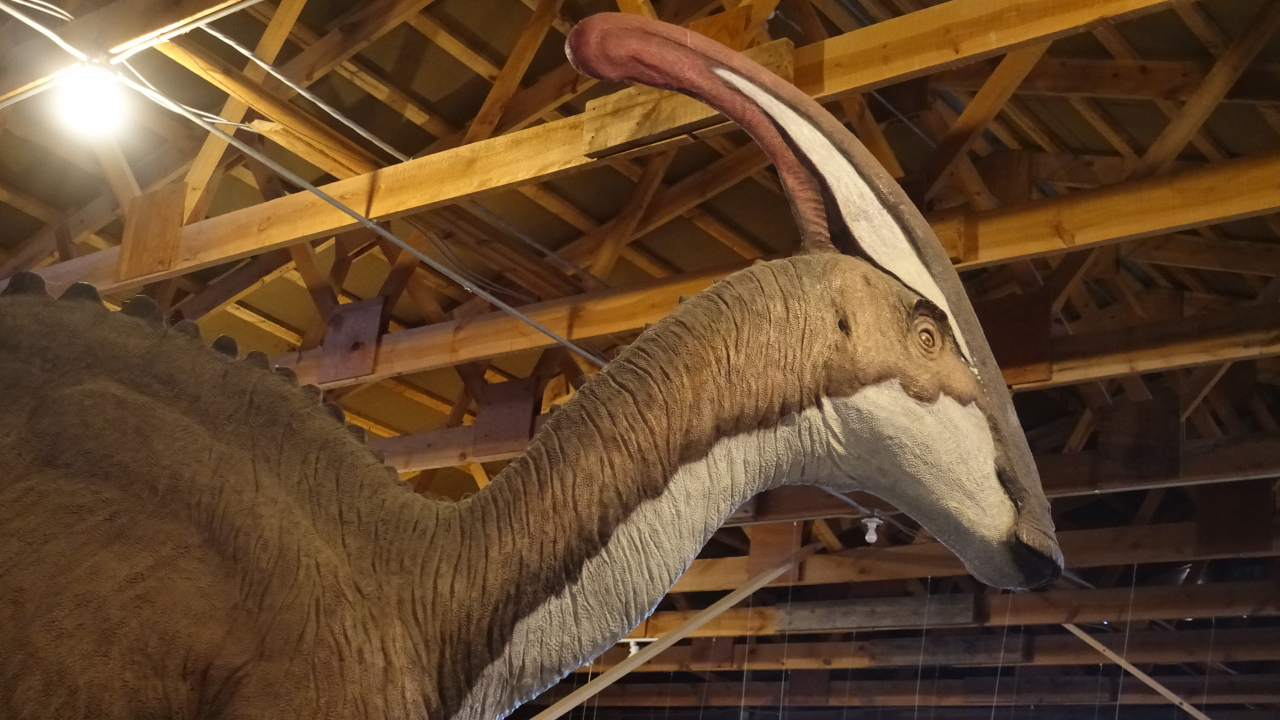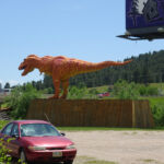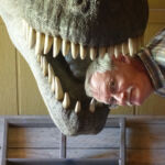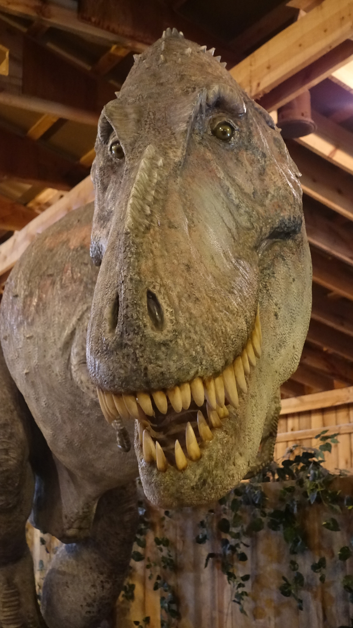 Dus zijn we eerst een dinosaurusmuseum gaan bekijken, maar dat viel tegen. Dat Tom bijna door zo’n beest opgegeten werd was nog het spannendste. (zie foto)