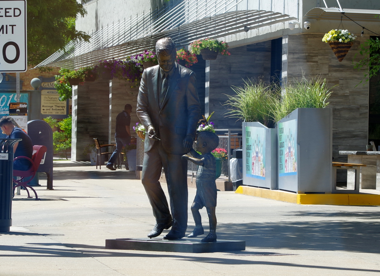Onderweg naaar het hotel nog een paar fotootjes van hoe zo’n plaats er nou uitziet. Dit is typisch voor heel veel plaatsen. Ze lijken allemaal op elkaar. Wat bijzonder is aan Rapid City is dat ze in het centrum op straathoeken beelden van alle Amerikaanse presidenten ooit hebben. We hebben er al een paar gespot.