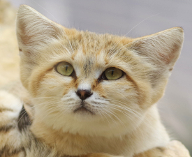 Na al een keer voor niets naar de dierentuin in Wuppertal te zijn geweest, waar ze net het verblijf aan het verbouwen waren, is het nu toch eindelijk gelukt. In het Parc des Felins in Frankrijk heb ik deze prachtige zandkatten kunnen fotograferen, mijn favoriete kattensoort. Ze zijn ongeveer even groot als een huiskat en blijven er hun hele leven uitzien als kittens. Karakteristiek zijn de driehoekige koppen en de schattige uitstraling. Maar vergis je niet. Het blijven wilde katten, fanatieke jagers, die niet te temmen zijn. Beslist niet geschikt als huisdier.