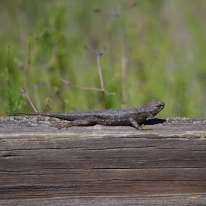 Eergisteren hebben we op weg naar Monterey eerst even een stukje van Pinnacles NP bekeken en een eindje gewandeld. Opeens schrok ik heel erg van een plotselinge beweging in mijn ooghoek. Tom had me al een tijdje lopen stangen over ratelslangen. Maar gelukkig was het maar een kleine salamander, die nog even geduldig bleef zitten voor een foto.