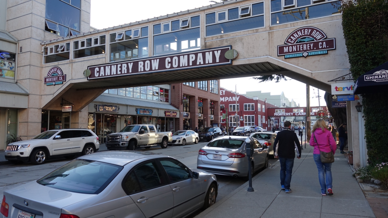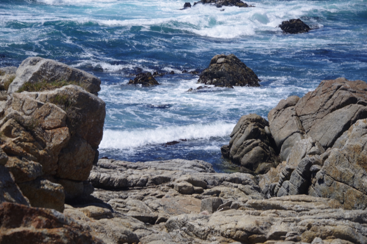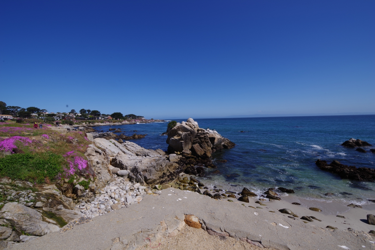 Monterey bleek een gezellig plaatsje te zijn met leuke winkeltjes en restaurantjes. Leuk om een avondje doorheen te struinen op zoek naar de laatste souvenirs en cadeautjes voor de thuisblijvers. De volgende dag zijn we eerst naar het aquarium gegaan en toen voor de lunch naar Carmel by the Sea. Daarna hebben we een deel van de 17 mile drive gereden langs de rotsige kust met overal stukken met bloeiende ijsbloemen. Vooral roze, maar ook wel andere kleuren. Het water van de oceaan was fel blauwgroen.