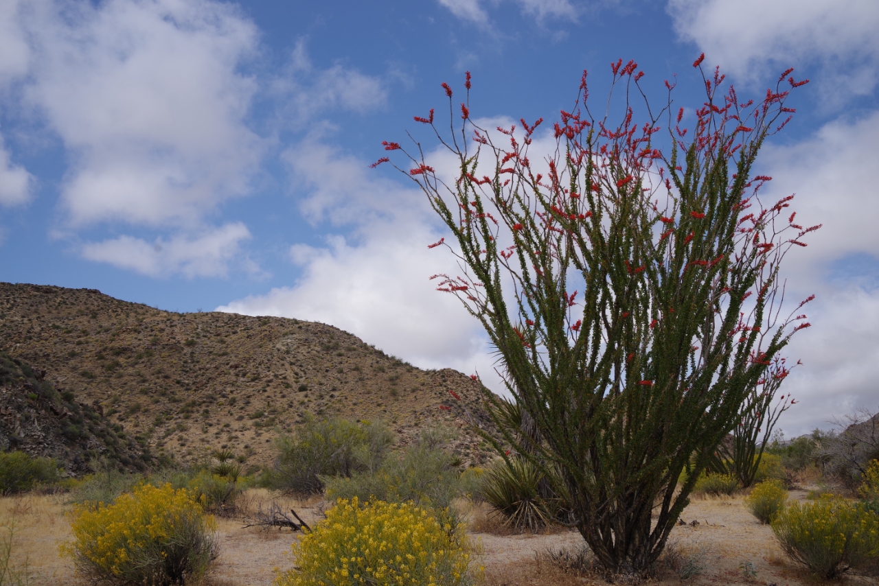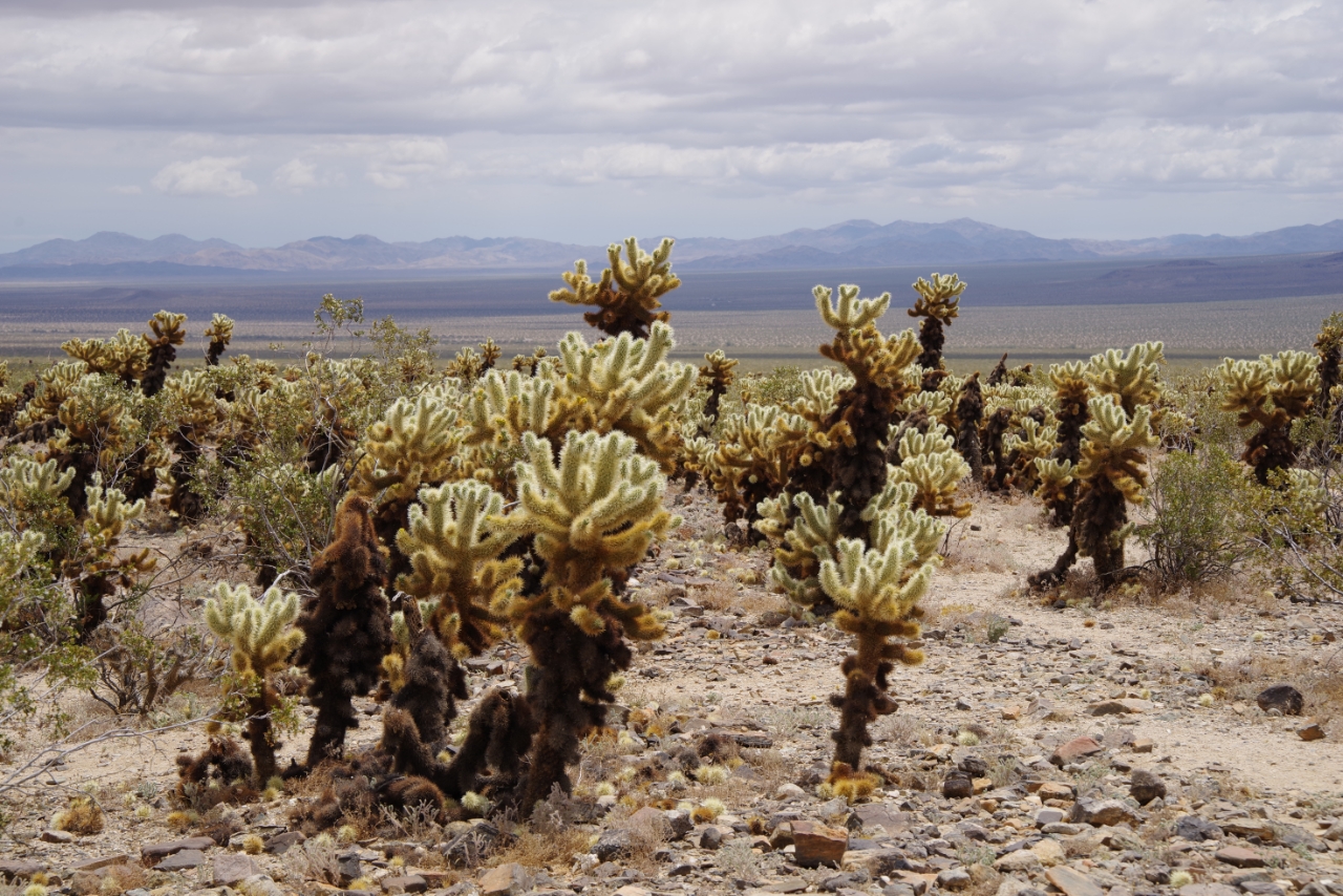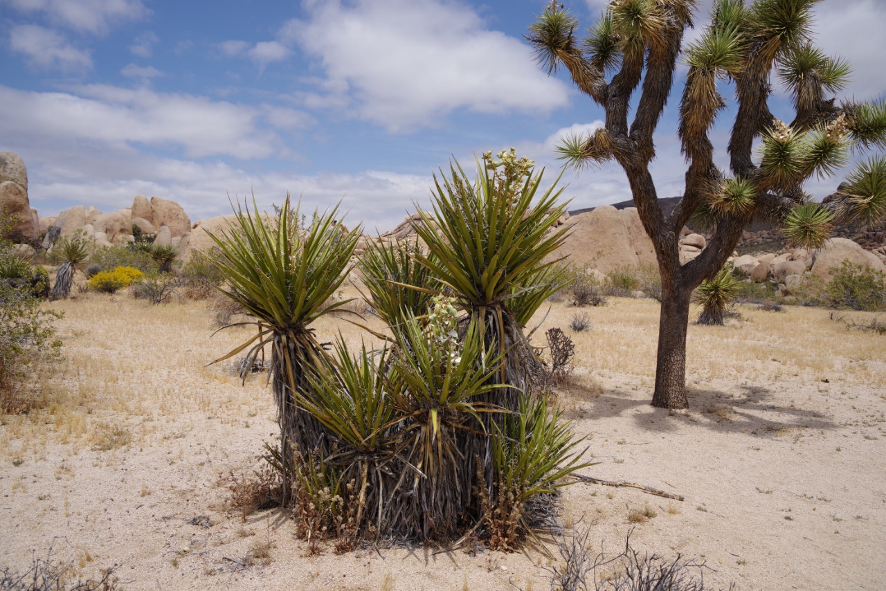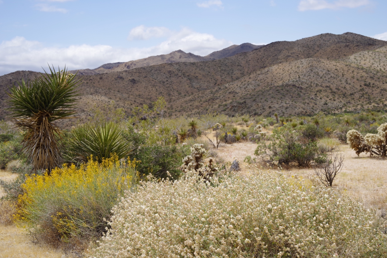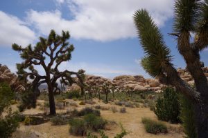 Vanmorgen regende het pijpenstelen (in Southern California nota bene) en dat maakte de auto weer redelijk toonbaar. Gelukkig werd het weer op weg naar Joshua Tree NP al snel beter. Het park viel ons absoluut niet tegen. Zoveel verschillende vegetatie. Uiteraard de Joshua Tree waar het park zijn naam aan dankt, maar ook yucca, agave, bloeiende christusdoorns en cholla-cactussen. Prachtig, als je zoals wij van planten houdt. Rotsen zijn er ook, evenals mensen die daar weer opklimmen. Maar verder was het er lekker rustig.