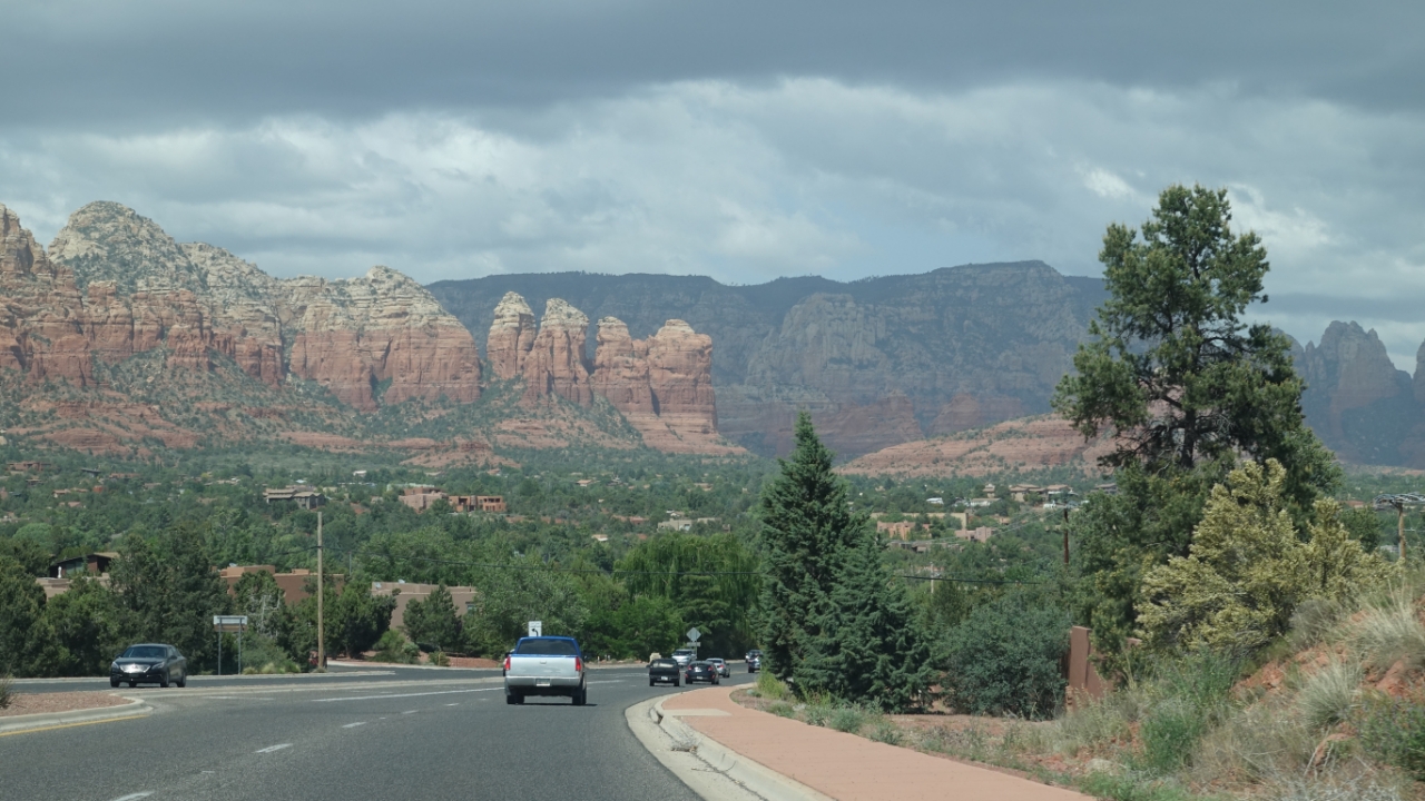 Gisteren zijn we over de beroerdste weg tot nu toe naar Sedona gereden. Als DT inderdaad werk maakt van zijn kreet ‘Make America great again’, dan mag ‘ie wel met de wegen hier beginnen. Kuilen, gaten en hobbels, en dat op de snelwegen.