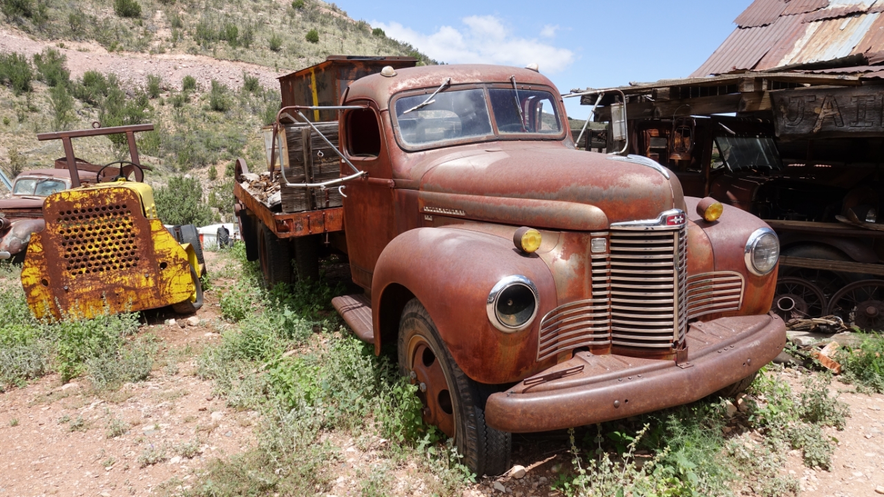 Vanmorgen hebben we in een roze jeep een ruige tocht door de omgeving gemaakt. Erg leuk, maar ik heb toch maar voor de zekerheid mijn stomasteunband omgedaan. In de middag zijn we naar Jerome gereden. Een stadje in oude stijl. Erg leuk om te zien, maar ook weer ontzettend druk en geen enkele vrije parkeerplaats. Vlakbij is een soort museumpje, eigenlijk niet meer dan een veredelde schroothoop, met hele oude auto’s, machines enz. Heel leuk om foto’s te maken. Inmiddels moesten we nodig wat eten en besloten we naar een minder drukke plaats in de buurt te rijden. Jammer dus. Daar waren wel restaurants maar die waren allemaal gesloten. Dan maar terug naar Sedona, maar ook daar niks te vinden. Uiteindelijk hebben we onze noodrantsoenen, te weten chips en energybars, moeten aanspreken. We snappen nu dus ook waarom het in het centrum van Sedona en in Jerome zo druk was. Alleen daar kun je blijkbaar iets te eten vinden op zondag en de kunst is er op tijd te zijn….