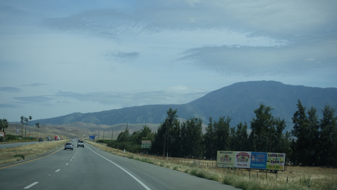 Gistermorgen zijn we vroeg uit Oakhurst vertrokken en hebben we met een rustig gangetje de bergen verlaten. Door een vlakker landschap met weilanden met zwarte koeien, heel veel sinasappel- en andere fruitbomen en een enkele wijngaard zijn we richting Kings Canyon gereden. Daar opnieuw bergen, haarspeldbochten en smalle wegen langs diepe afgronden. Maar Klungel begint er blijkbaar al een beetje aan te wennen (en ik ook).