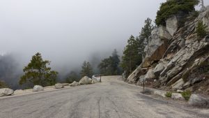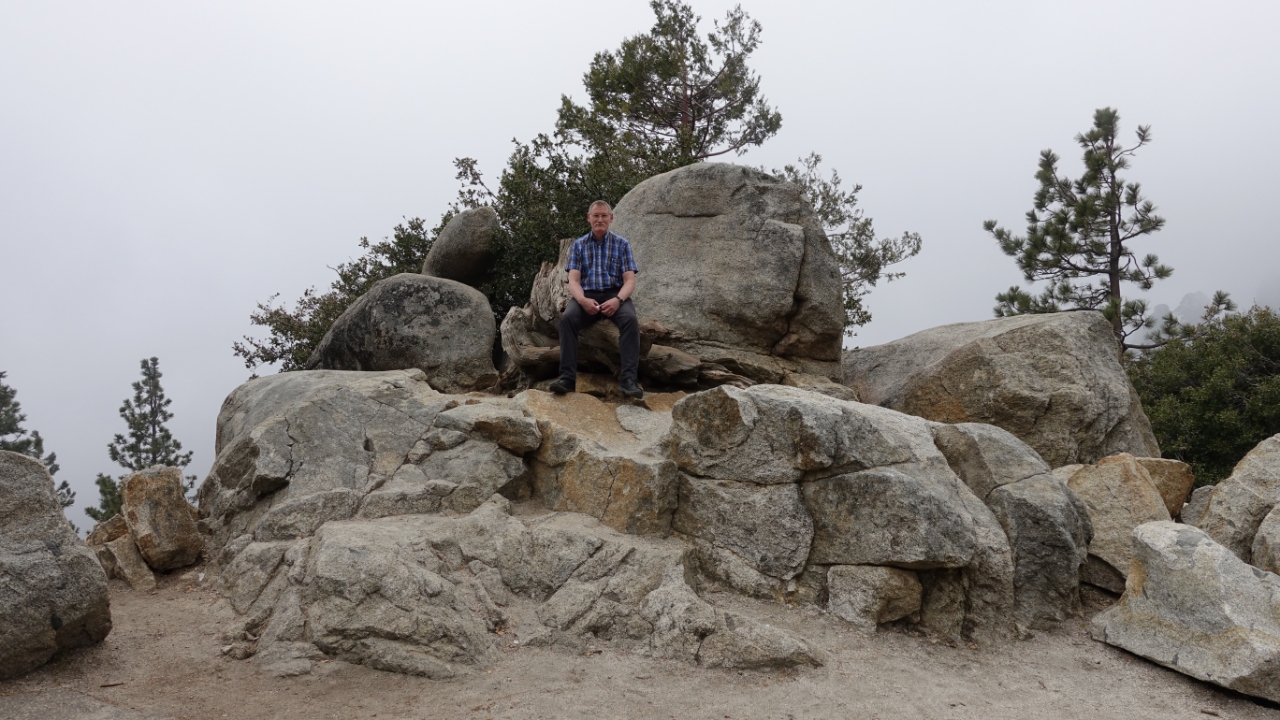 Na het inchecken en de lunch zijn we naar de boom met de grootste omvang van wel 36 meter gereden. Om bij deze General Sherman Tree te komen moet je een pad van 700 meter met trappen en een hoogteverschil van 65 meter aflopen. Prima te doen, tot je dezelfde weg terug moet. Vooral met mijn conditie. Tom had er weinig moeite mee. Maar goed, met af en toe even uithijgen op een bankje ben ik toch weer boven gekomen. We wilden nog naar Moro Rock maar daar was het zo mistig dat van een uitzicht geen sprake was.