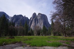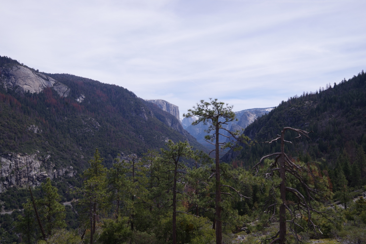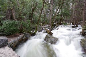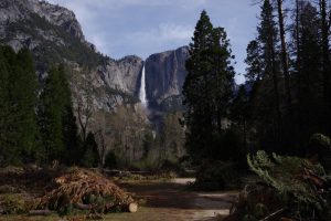 ‘Earth day’ hier dus vandaag en dat hebben we geweten. Dankzij de waarschuwing van de dame van het visitorcenter waren we al voor 8 uur in het Yosemite park. We waren lang niet de enigen, maar konden rustig wat foto’s maken en genieten van de indrukwekkend mooie natuur. Helaas zijn grote delen van het park nog afgesloten, deels omdat veel hooggelegen wegen nog door sneeuw en ijs onbegaanbaar zijn en deels door wegwerkzaamheden. Er is dus maar een heel klein deel te bezoeken. Verder zijn heel veel bomen doodgegaan door de droogte die ze hier de afgelopen jaren gehad hebben en een keverplaag die er ook nog een flink aantal heeft gesloopt. Tegen een uur of 10 werd het steeds drukker en een uur later was er geen doorkomen meer aan. In de file van uitkijkpunt tot uitkijkpunt, vechten om een parkeerplekje of als alternatief lange wachttijden voor de stampvolle shuttlebus. We hebben diverse aanrijdingen met blikschade gezien.