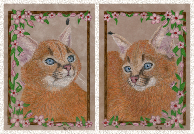 Meteen toen ik deze lieve caracal kittens zag, gefotografeerd door Fiona Ayerts, wist ik dat ik ze wilde tekenen.