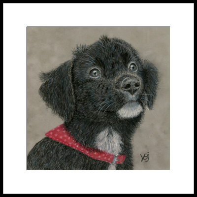 Ook een nieuwe tekening, die al een tijdje op de kast stond. Ik kon hem nog niet op de website zetten, omdat het een verrassing moest zijn voor de eigenaar van het hondje. Gisteravond is hde tekening overhandigd, dus nu mogen jullie hem ook zien.